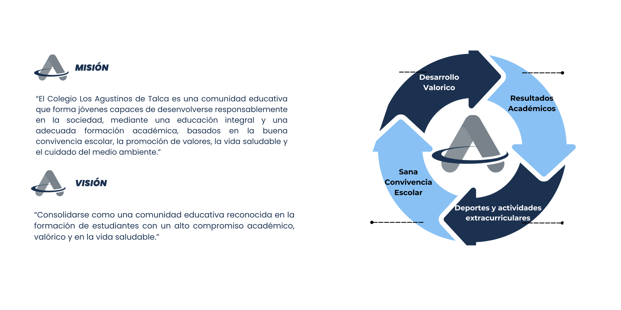 Nuestro Colegio se esforzará por formar estudiantes con un grado de compromiso significativo hacia el aprendizaje, a través del desarrollo de una labor pedagógica sustentada en la integración curricular, la formación valórica institucional, acompañamiento de las familias y el logro de aprendizajes en las distintas áreas del conocimiento